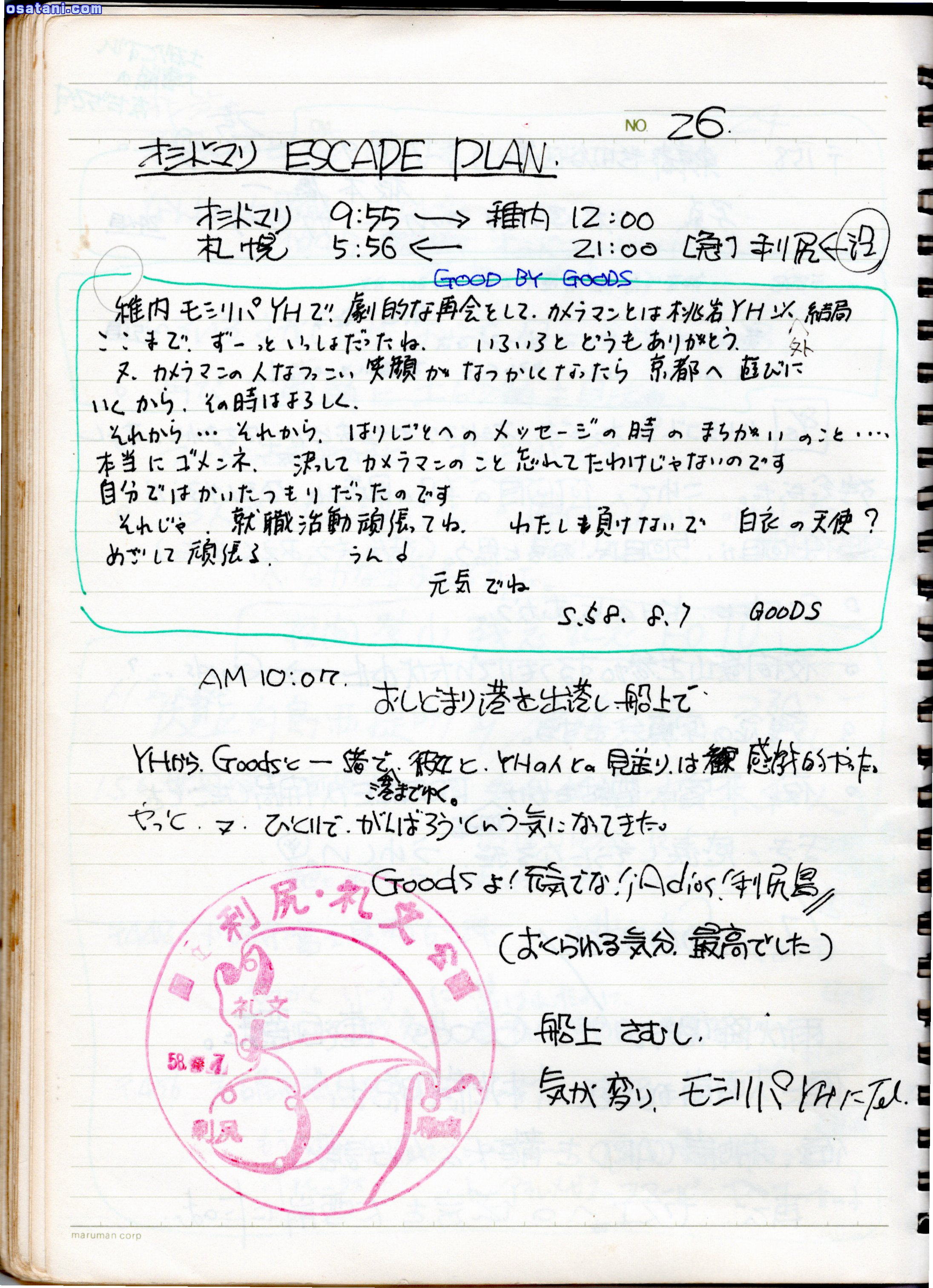 前略、良子さん、お元気ですか? また、逢えたらいいですね。旅をしていますか?山に登ってるのですか?