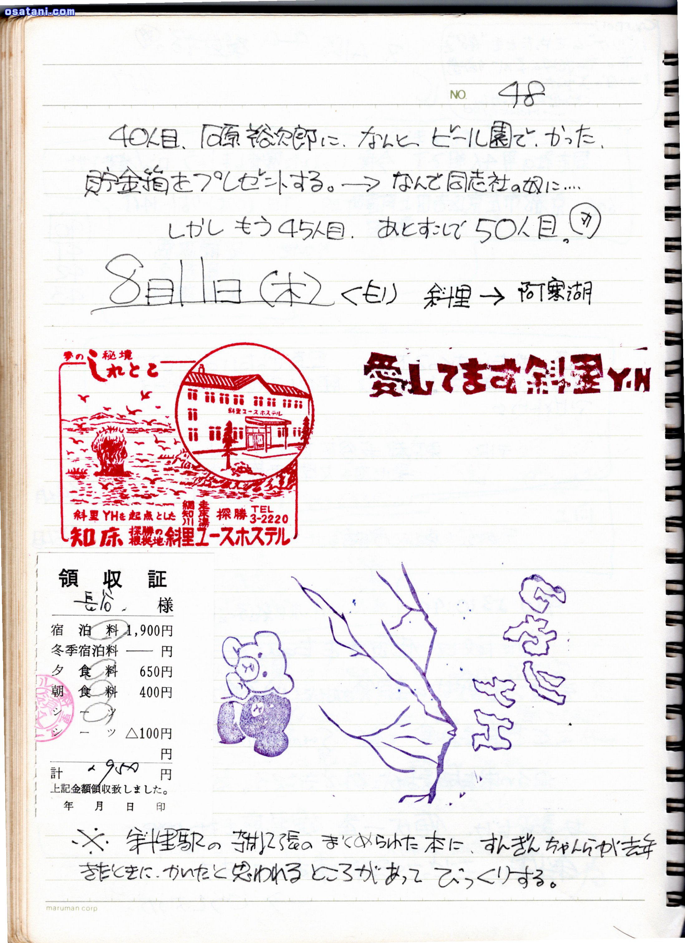 そして、斜里駅に向かうと、そこのあった旅人のノートに、昨年清水とさがしまわった。大阪の短大の女の子の書き込みがあった。