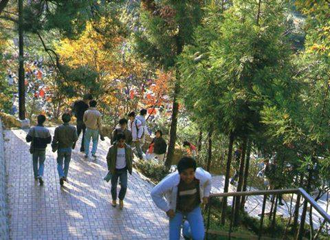 大学前の階段、1982年ごろタオルが張られたがその前はコンクリだった。バスプールについてこの階段を上る。